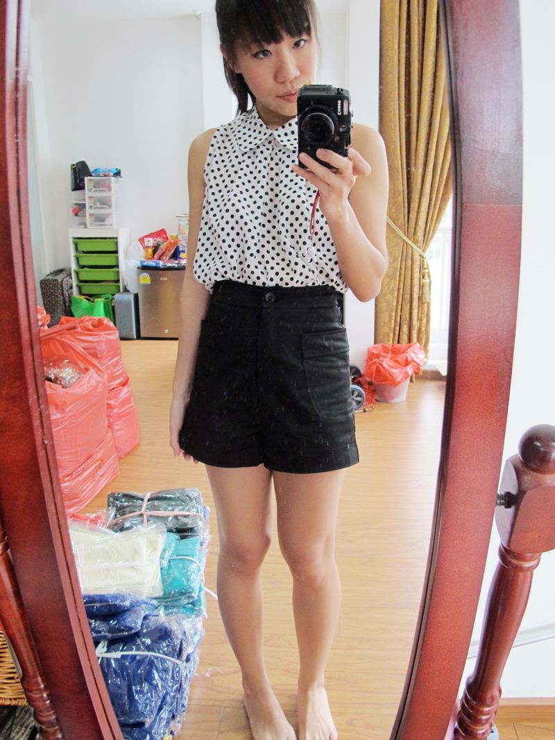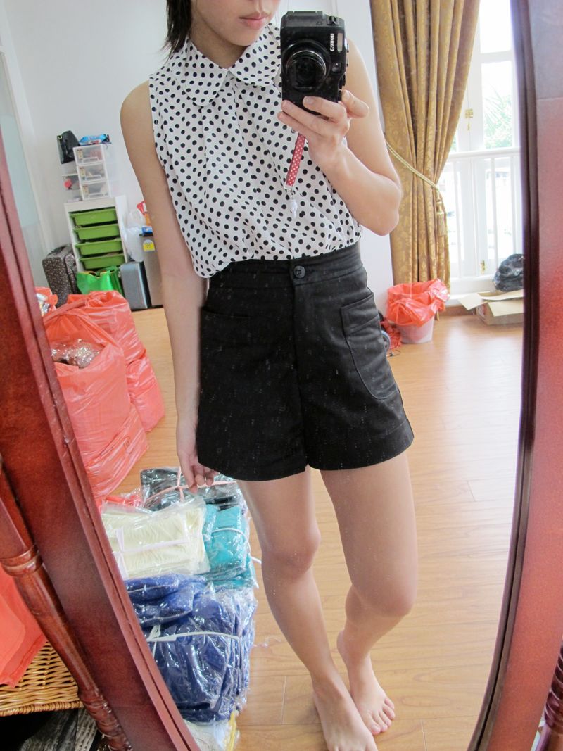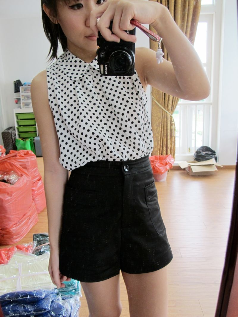What I wore: Vintage 60's Top in White with Black Dots, Chanel inspired hi waist shorts in black.