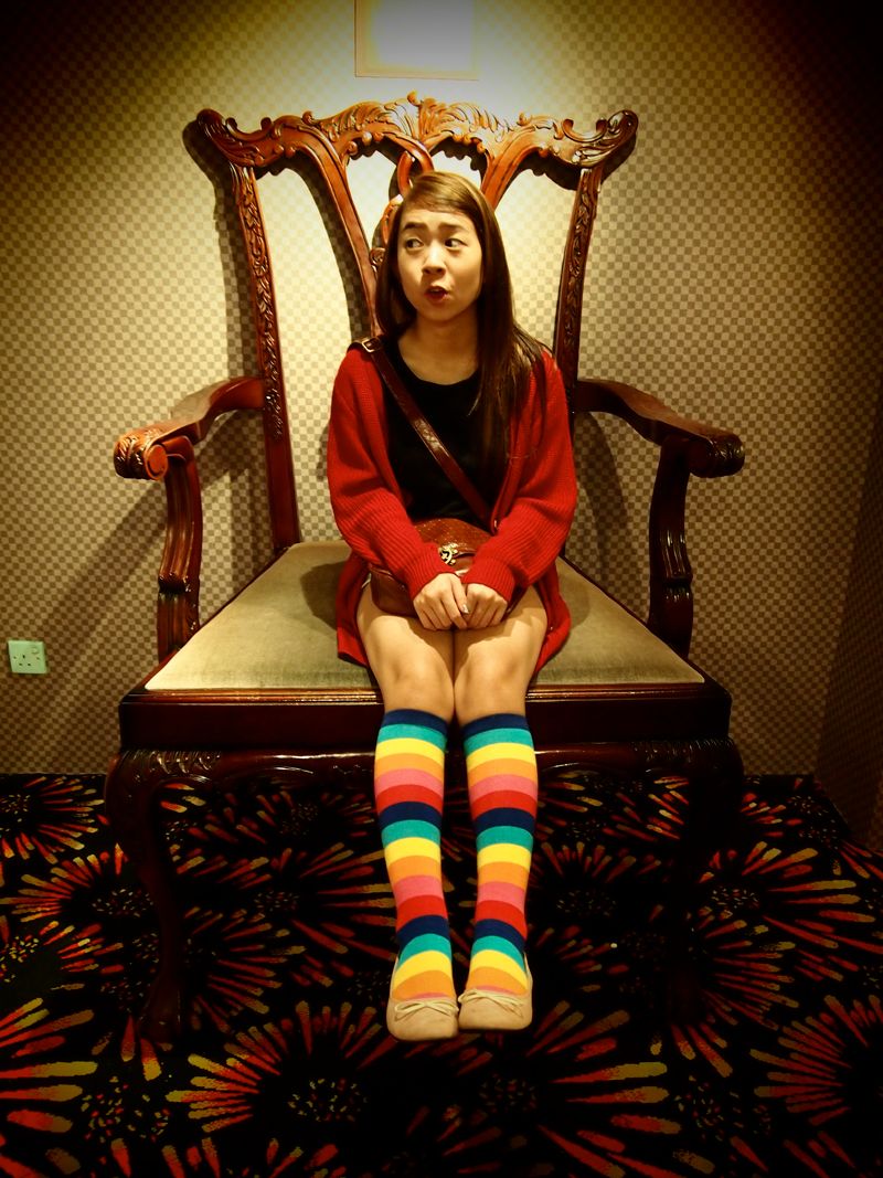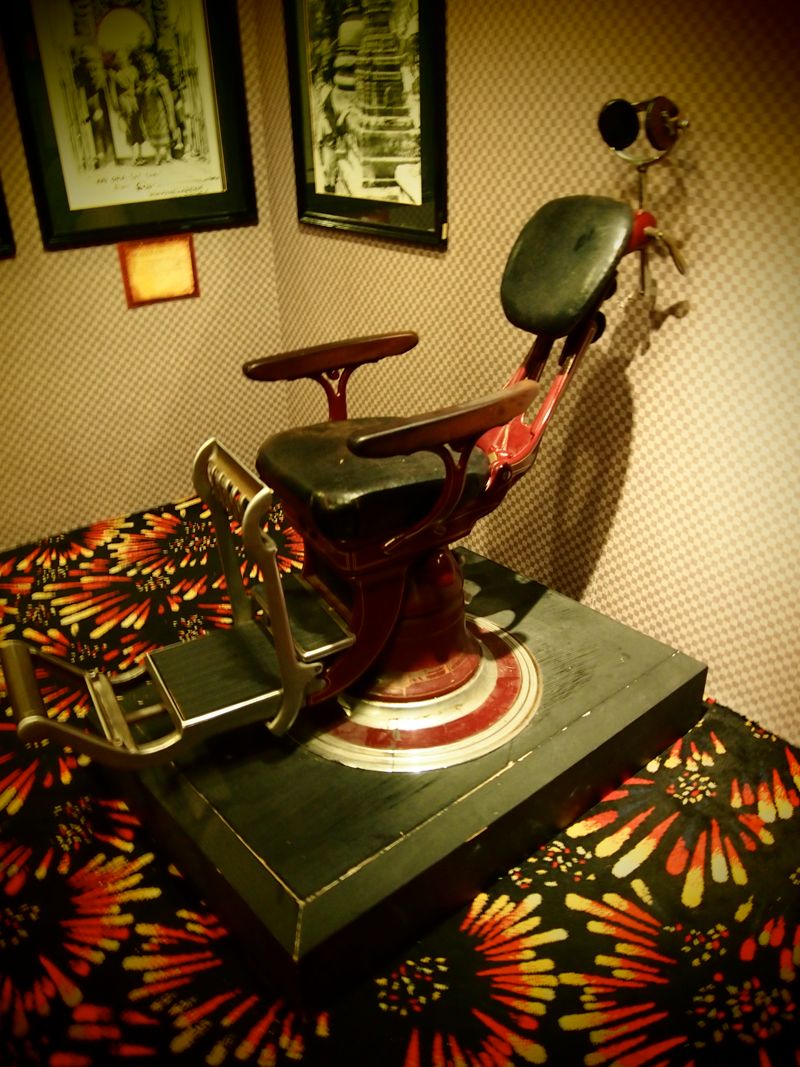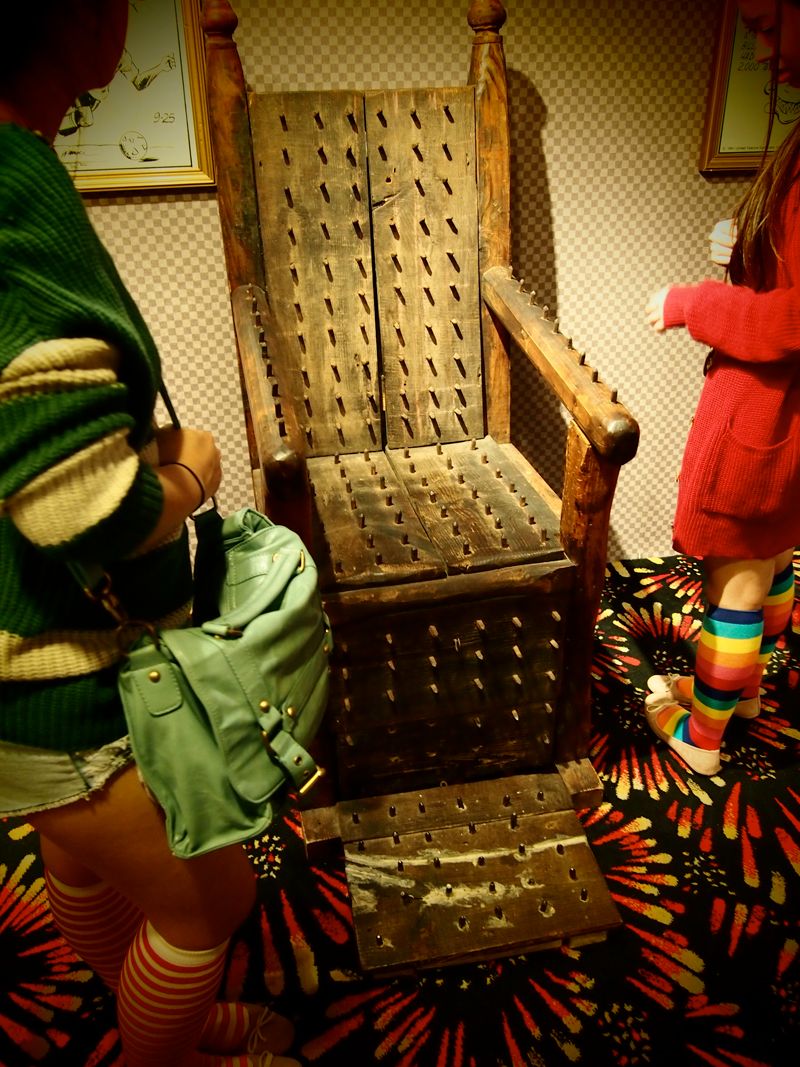 Jess sitting on the chair which belonged to the tallest man in the world!