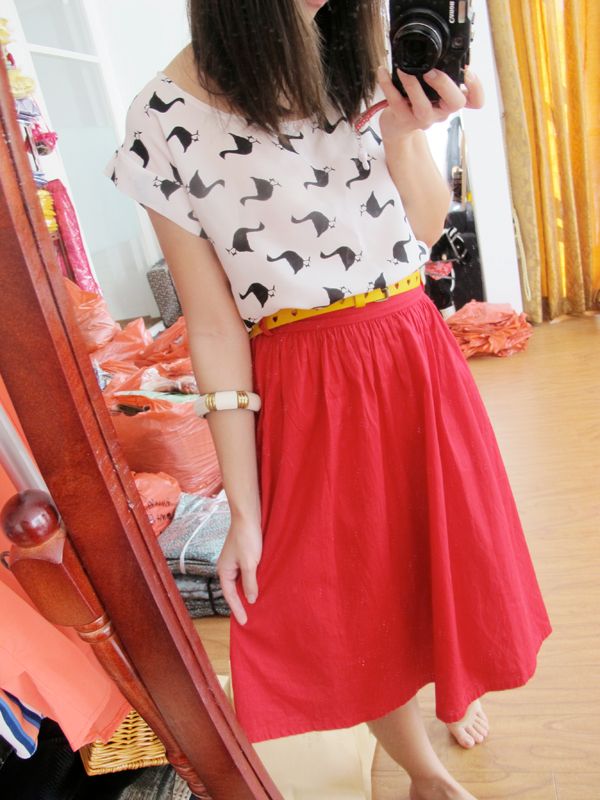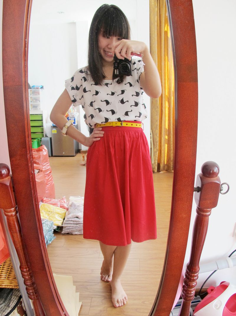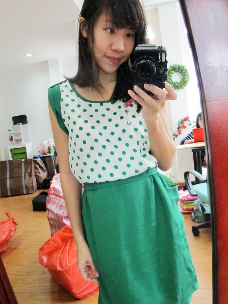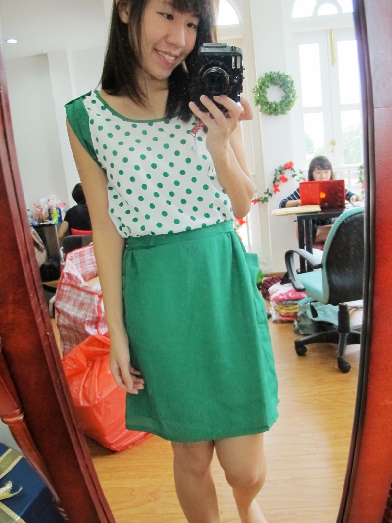 Wore this green polka dot dress (upcoming on TTR) with red flats!