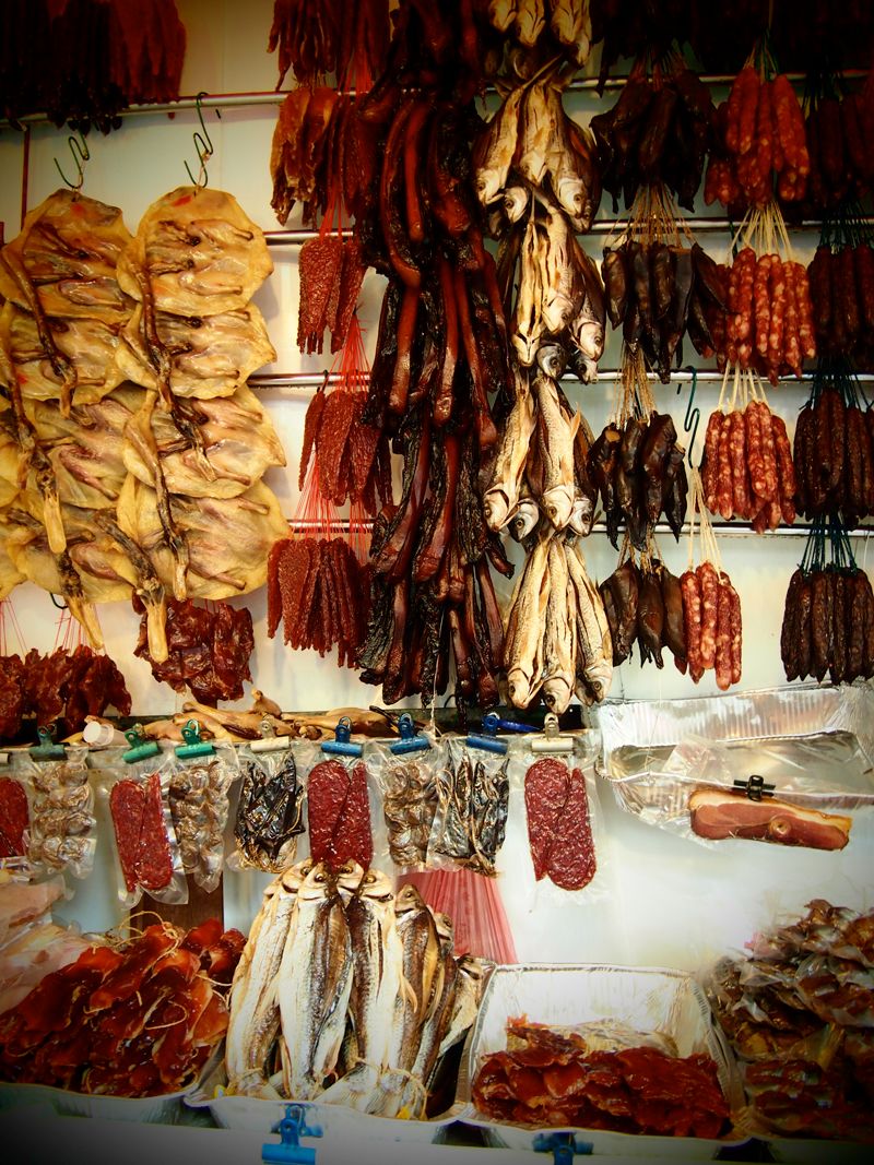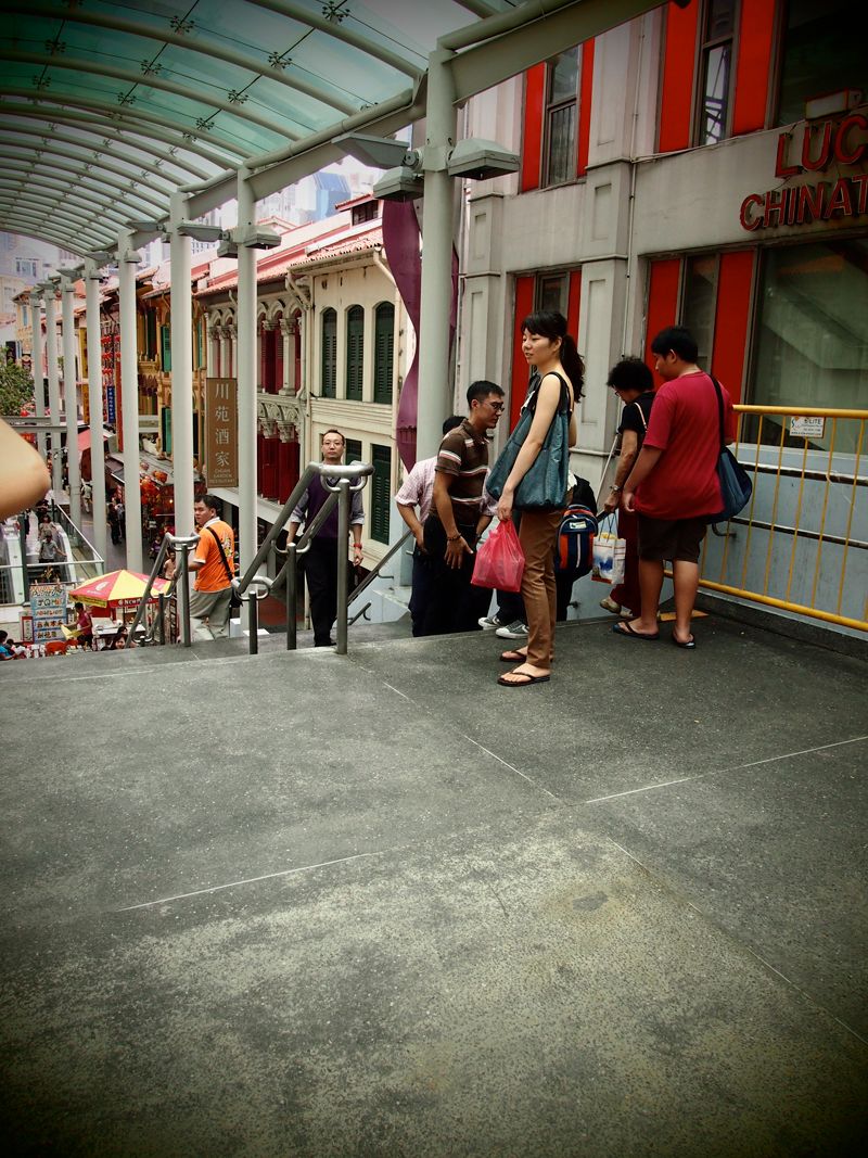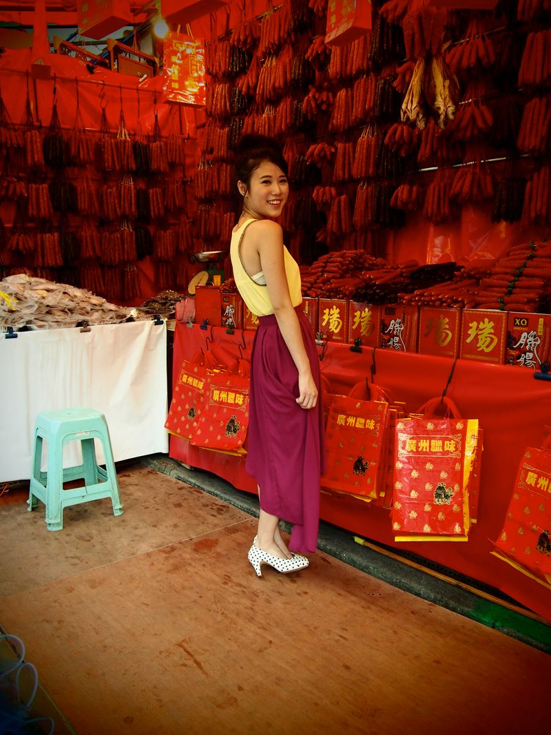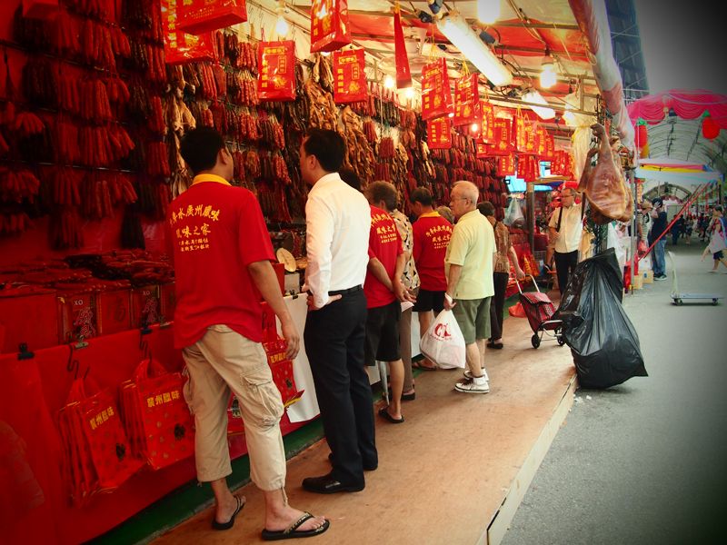 Uncle of the 烧腊 stall staring at belle of Chinatown.