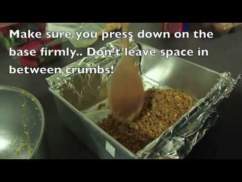 1. Stire biscuit crumbs & melted butter together and press firmly with the help of a spoon onto the base of your lined tin. Chill for at least 30 minutes in the fridge or until cream cheese mixture is done.