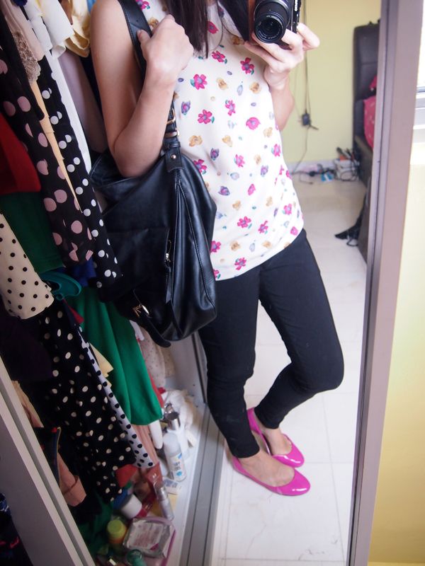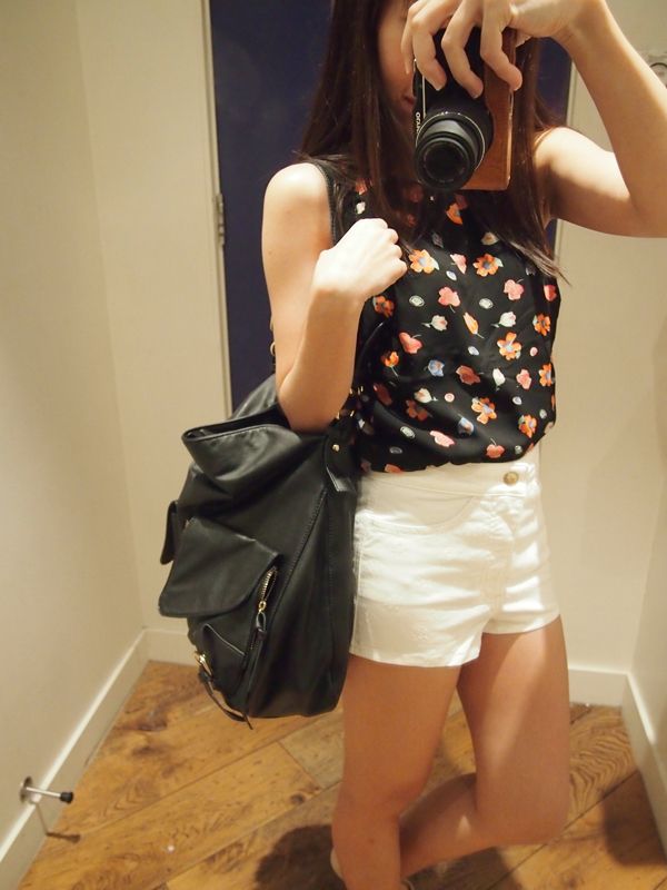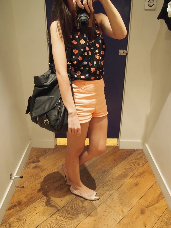 I took out the floral shorts to compare the cut with the pair of Topshop shorts I just bought...
