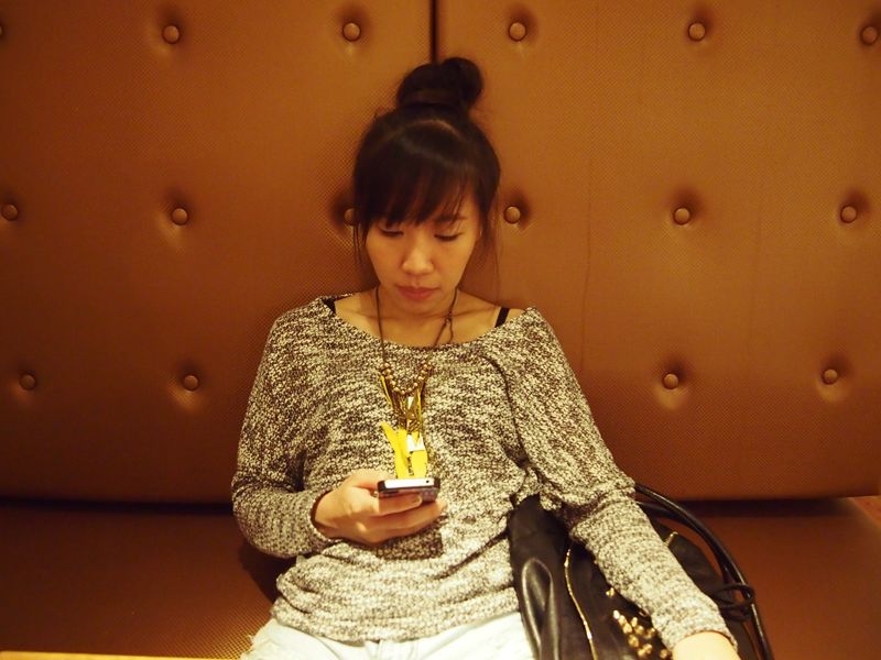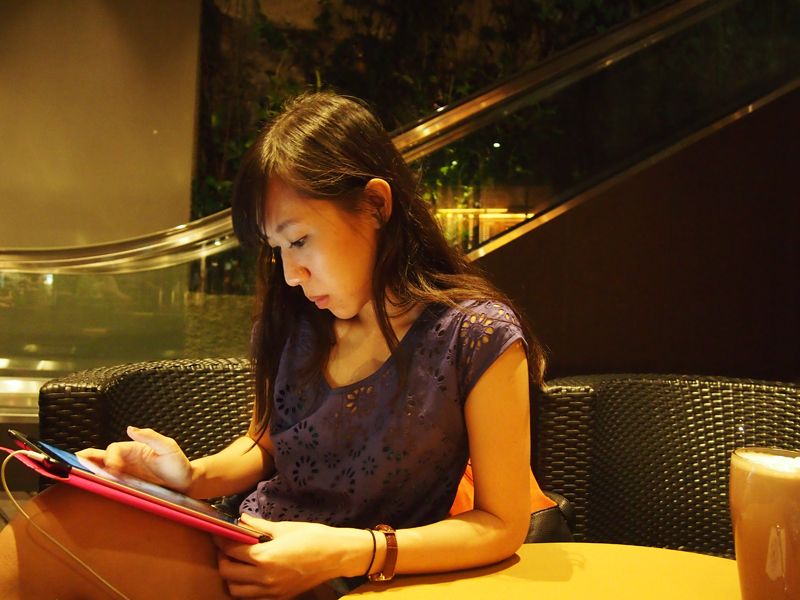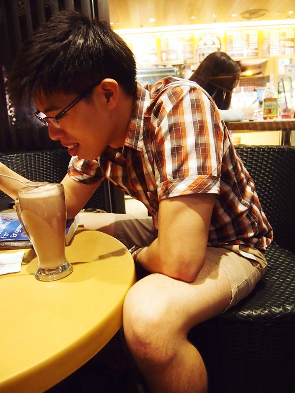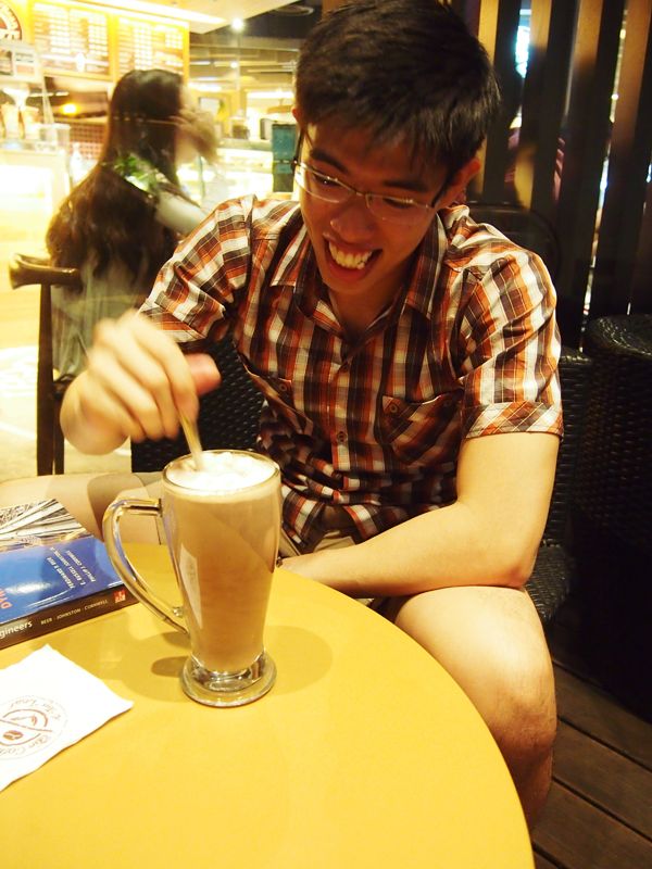 Chilling at Coffee Bean with iPad (for me) and textbooks (for Thom, lol).
