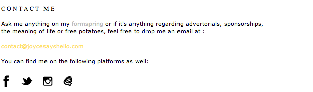 Oh yes, by the way if you didn't know, clicking on the logo brings you back to the main page if you're on other pages like 'OOTD' or 'CONTACT ME' or 'ABOUT'.